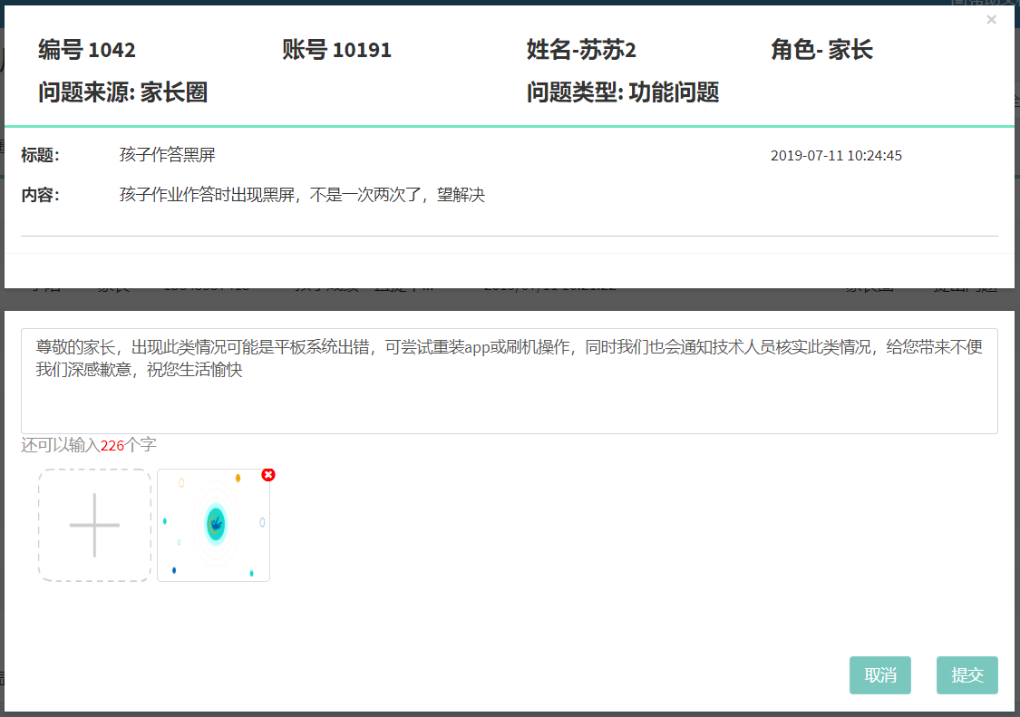 1、回复:可实现多次回复,支持图文共存,详见下方回复示例图