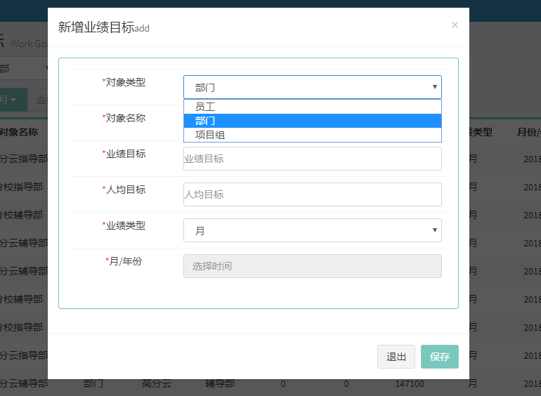 进入营销管里--业绩目标,可以根据条件查询员工、部门、项目组的业绩目标,可以新增、查看和修改员工、部门、项目组的业绩目标;